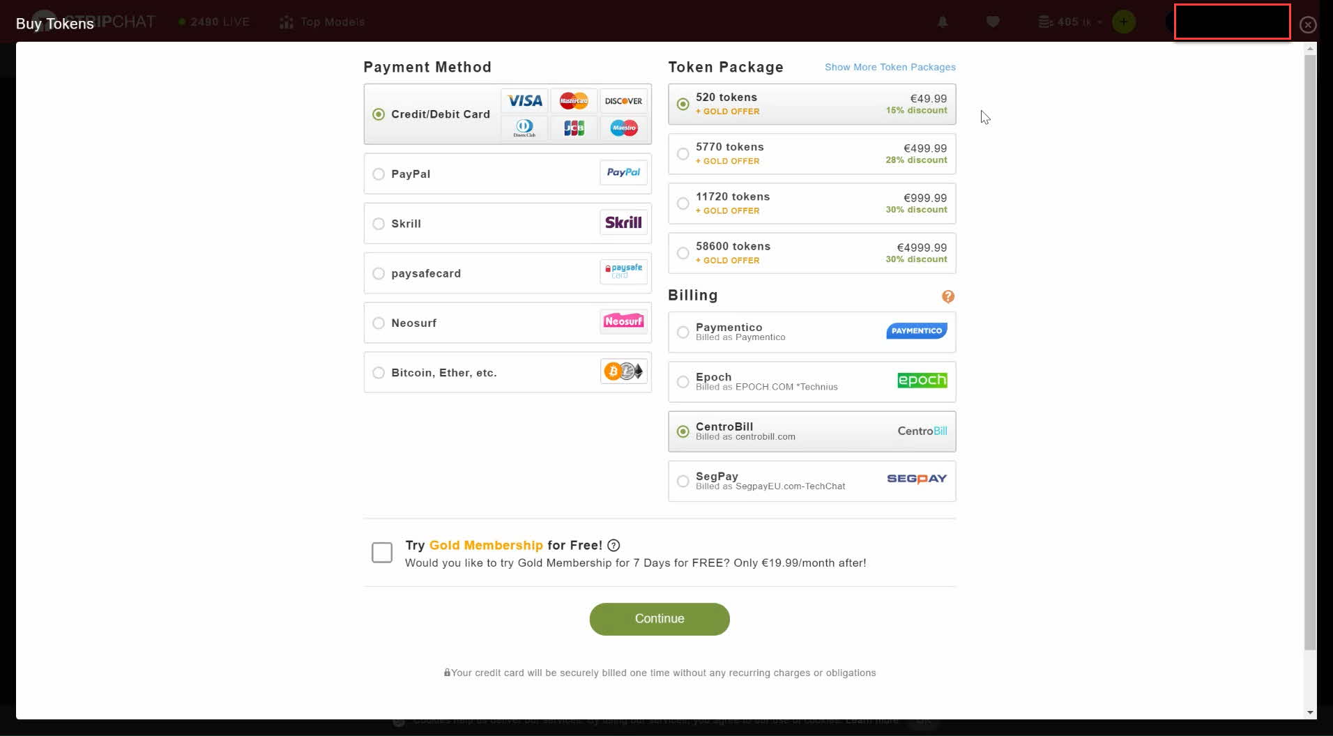 In our example, every minute in a private webcam chat session will cost 3 dollars and 7 cents.